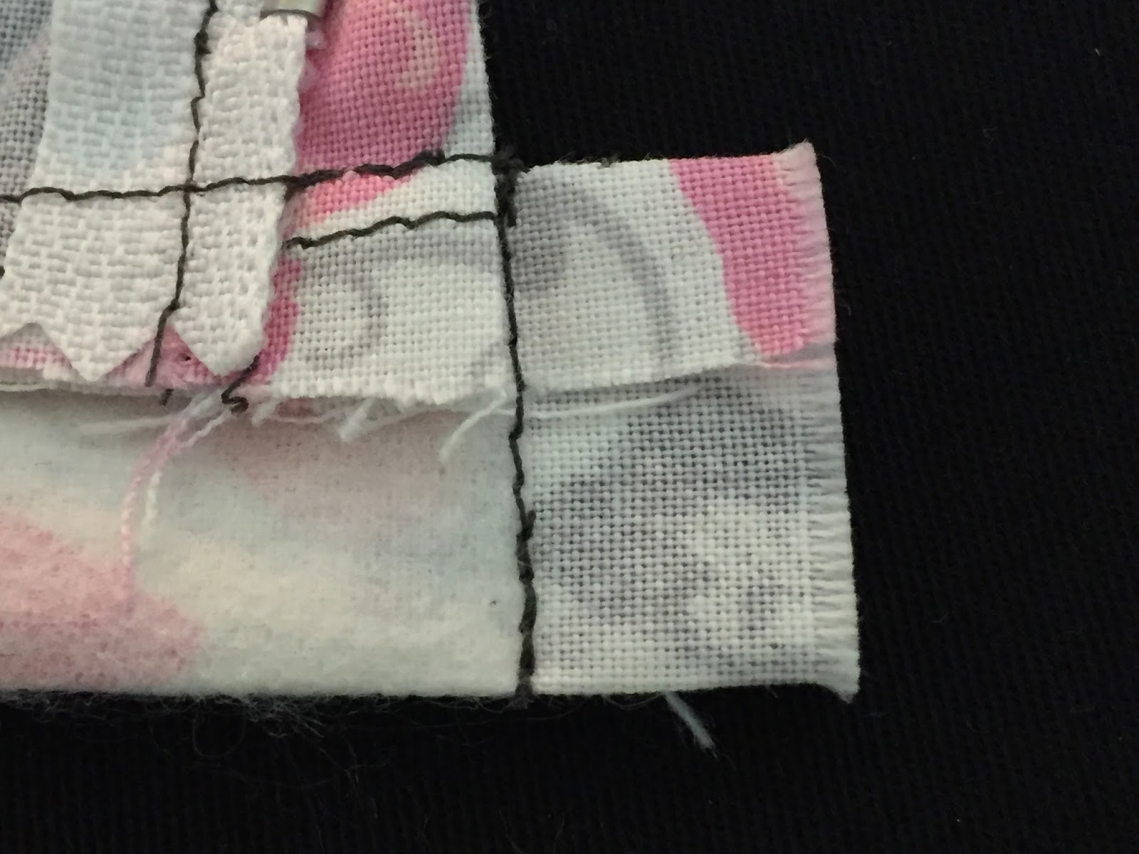 Then fold the hem back up to the double fold. Stitch close to the edge of the inside fold.