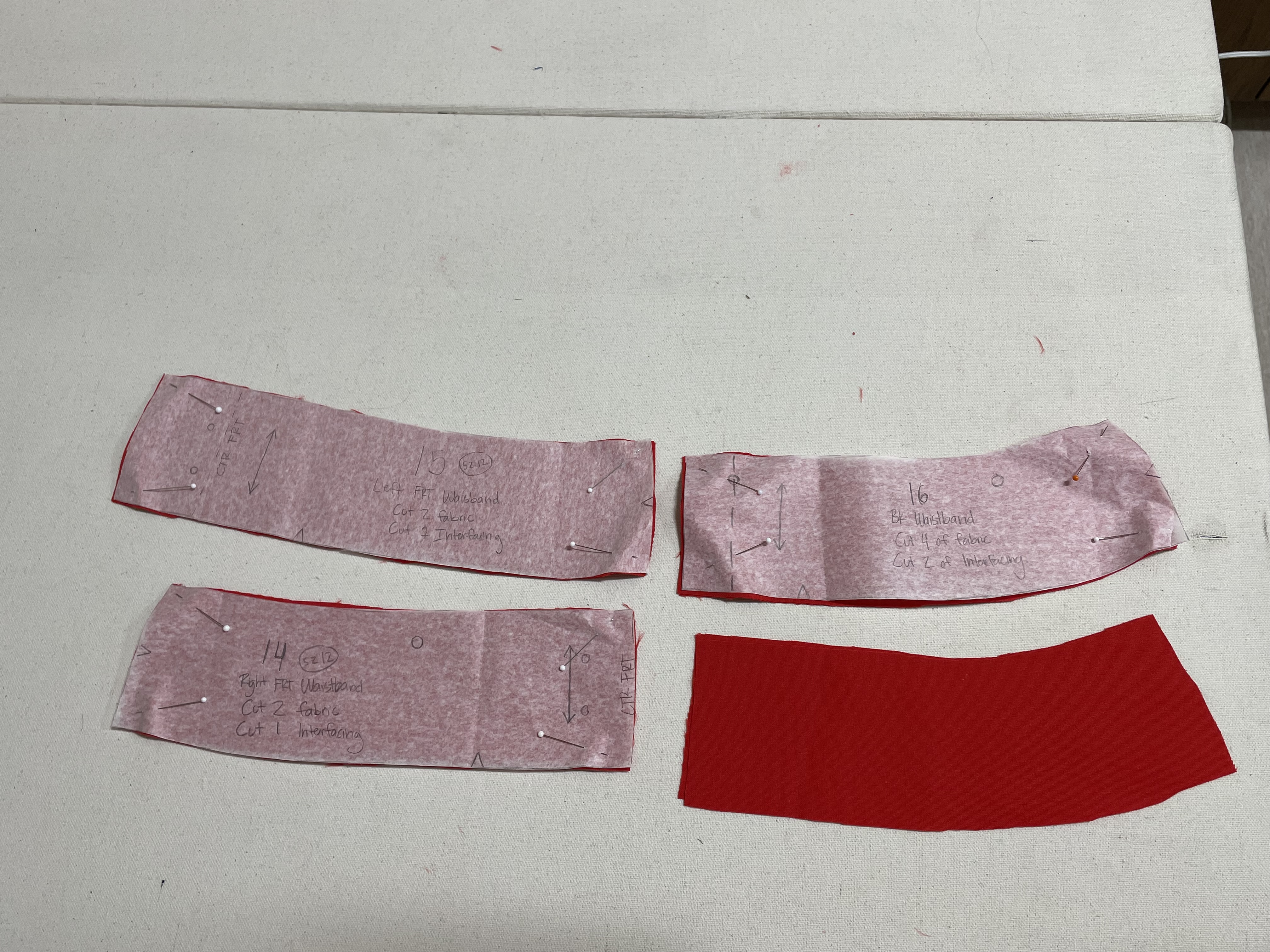 Press interfacing to waistband pieces. it is best to label each of the waistband pieces to avoid confusion.